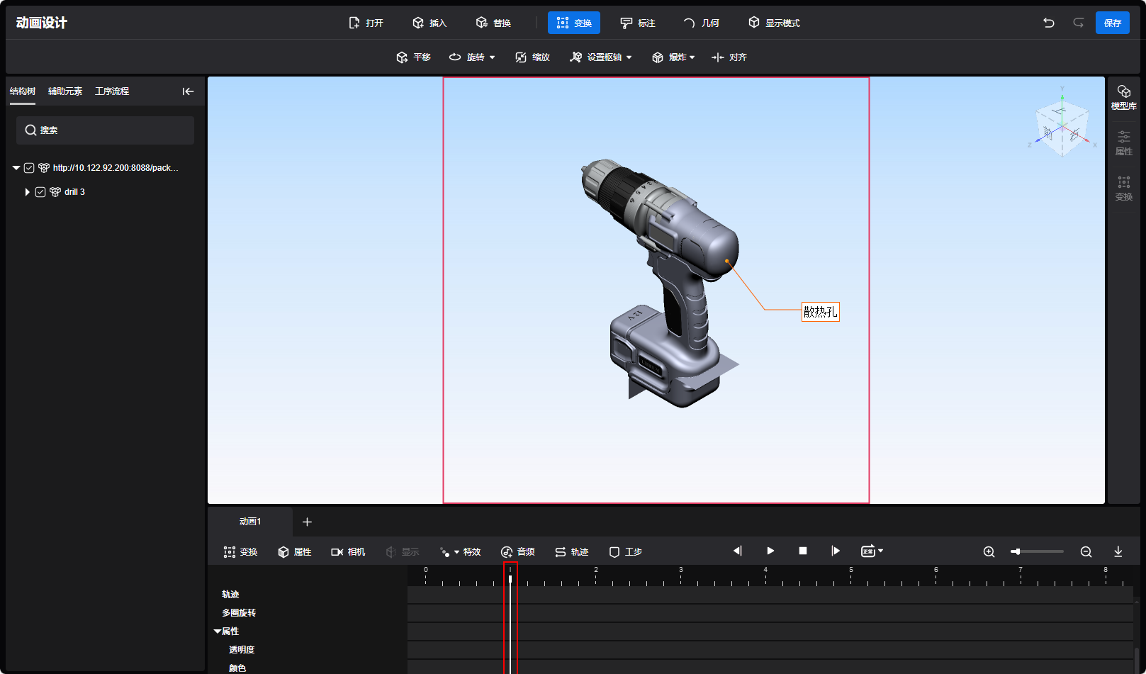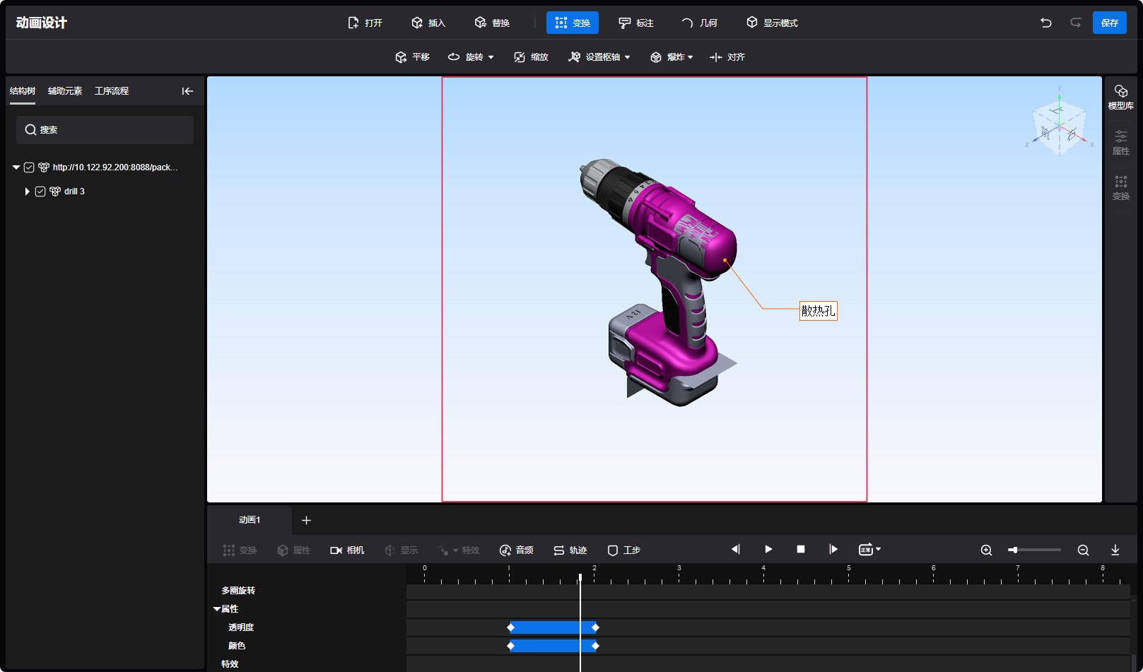 - 单击播放按钮,或手动拖动播放头移动,即可预览模型颜色动画效果,如下图。