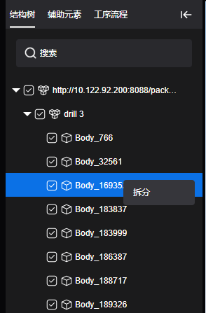 节点,选择需要进行轨道拆分的零件,按住Ctrl键可多选。然后右键单击并选择拆分。