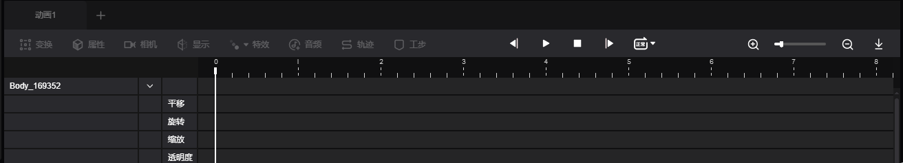- 根据需要,在零件对象的平移、旋转、透明度、颜色轨道上添加关键帧,如下图所示。更多关于添加平移、旋转、透明度、颜色动画信息,请参见变换动画、模型透明度动画、模型颜色动画。