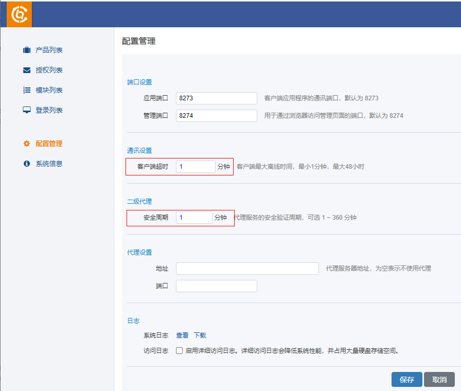 - 激活后,在配置管理页面,设置超时时间为1分钟。
