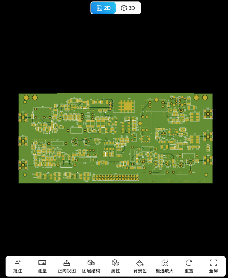 - 全屏:隐藏浏览器的所有工具栏、菜单栏及状态栏,全屏显示板图文件2D预览内容。