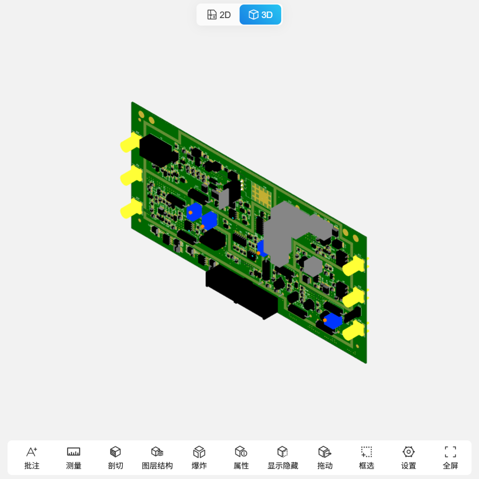 EDA Viewer 3D 视图模式支持对板图文件3D模型进行预览及交互操作,具体功能如下: