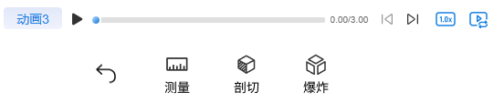- 在动画播放过程中,若调用测量、剖切、爆炸等辅助功能,软件会自动暂停动画播放。当辅助功能操作完成后,单击