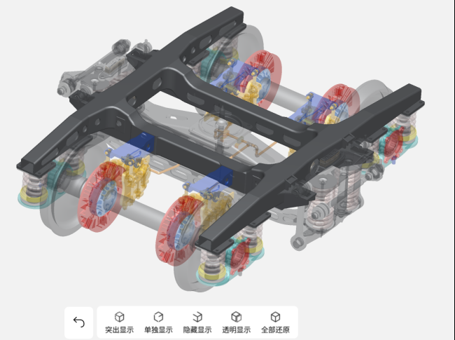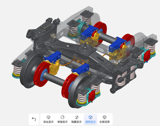 功能:突出显示模型上选中的零部件。其它未选中的零部件将透明显示。