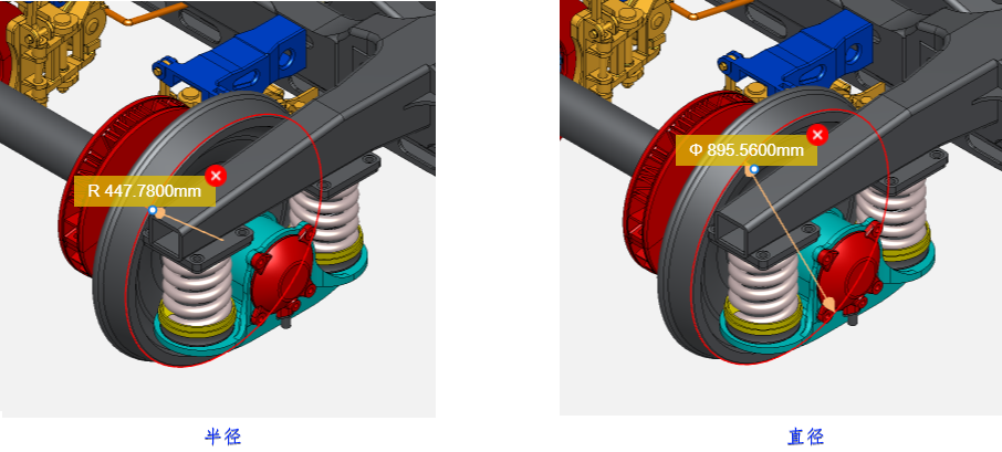 。 - (可选)默认测量的是半径, 要测量直径,则单击Ø。