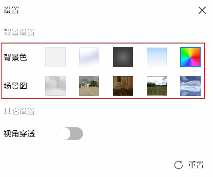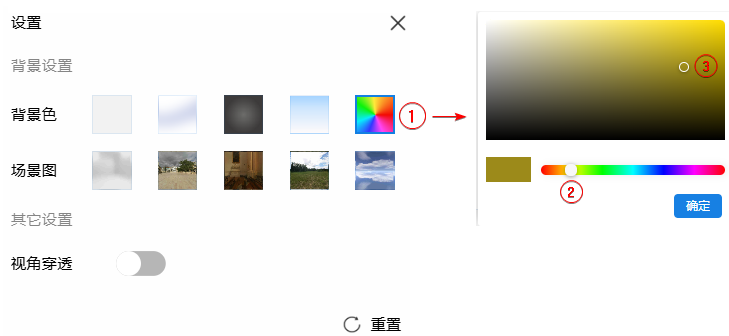 菜单。 - 在设置窗格中,选择背景色或场景图。