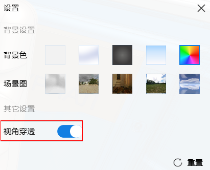 菜单。 - 在设置窗格中,开启或关闭视角穿透。