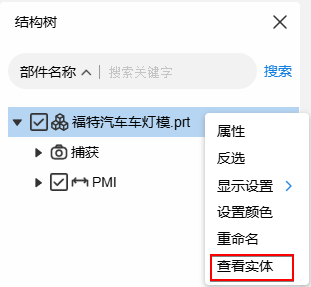 - 在结构树中,右键单击模型节点,选择查看实体选项。