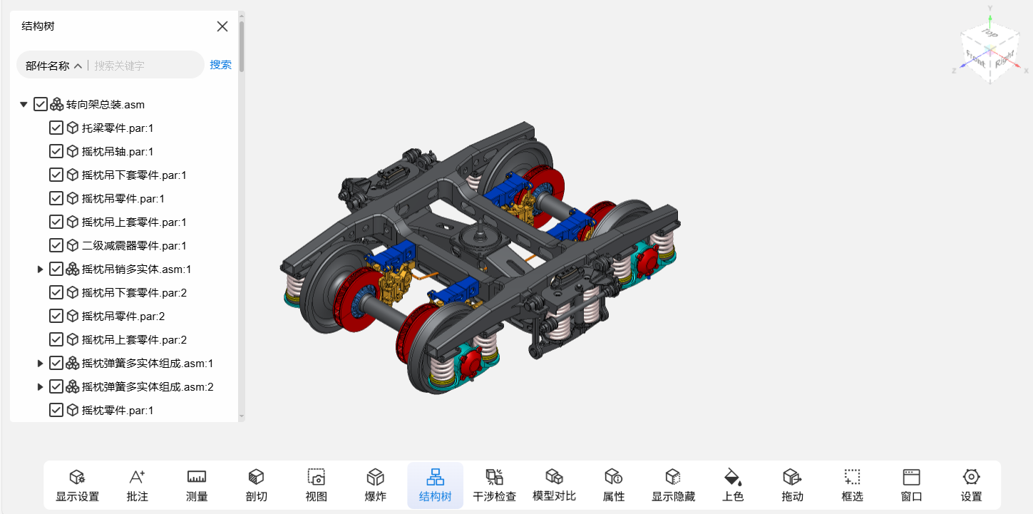 功能:开启模型结构树显示。可以通过结构树查看模型的结构,以及对模型的零部件进行显示设置。