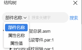 - 在结构树中可输入零部件名称、属性名、属性值对零部件进行搜索。